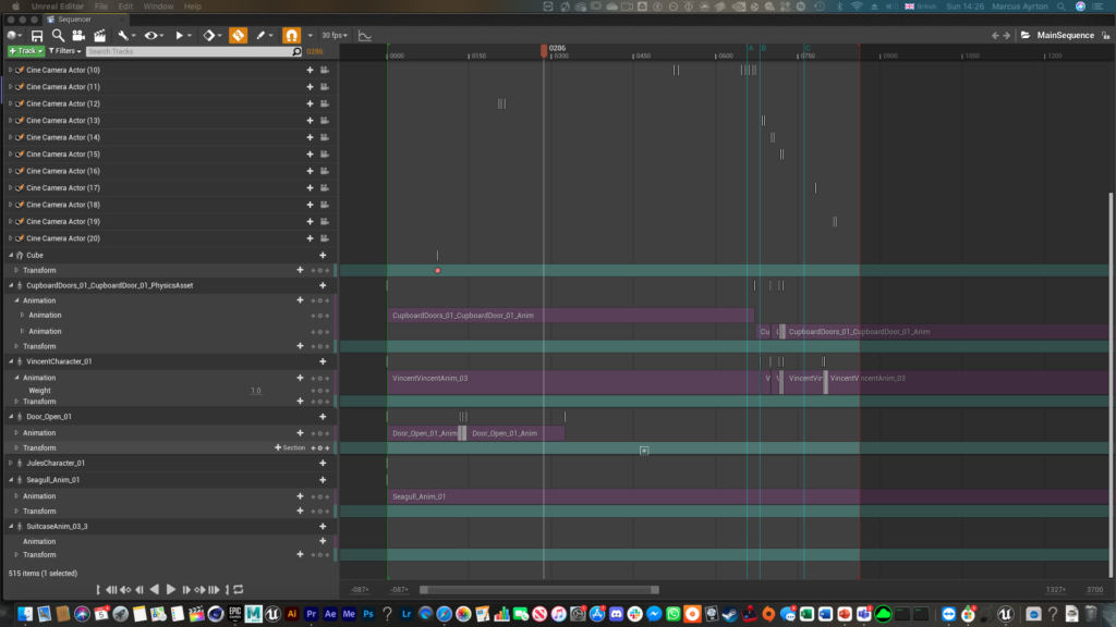 After fixing the suitcase animation, I was very happy with how the sequence turned out. I added the shots I wanted to, and using premiere pro I added back in the audio, re timed it, and also added a vignette to add a more dramatic effect, as I feel the natural lighting created makes the environment too happy. As my objective for this unit wasn’t to focus too much on lighting, I didn’t alter too much inside the engine other than the intensity and position of sunlight.